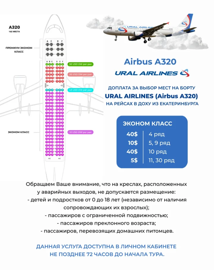 Доплата за выбор мест на борту Ural Airlines в Анталью из Екатеринбурга/Москвы