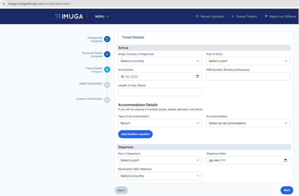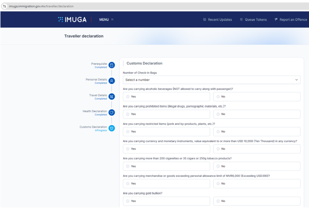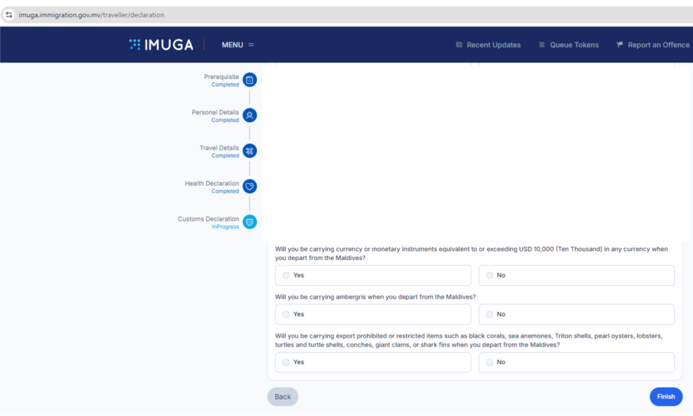 Для заполнения декларации нужно перейти на сайт Миграционной службы Мальдивских островов и заполнить онлайн анкету на английском языке.