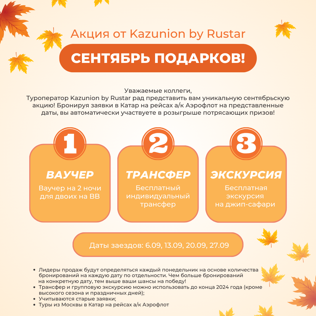 СЕНТЯБРЬ ПОДАРКОВ С KAZUNION! (А/К АЭРОФЛОТ В КАТАР ИЗ МОСКВЫ)
