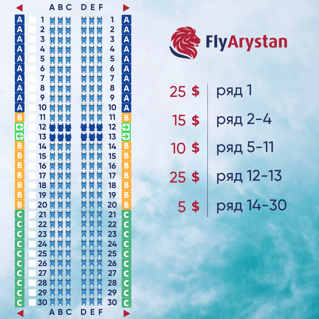 Доплата за выбор мест на борту FlyArystan